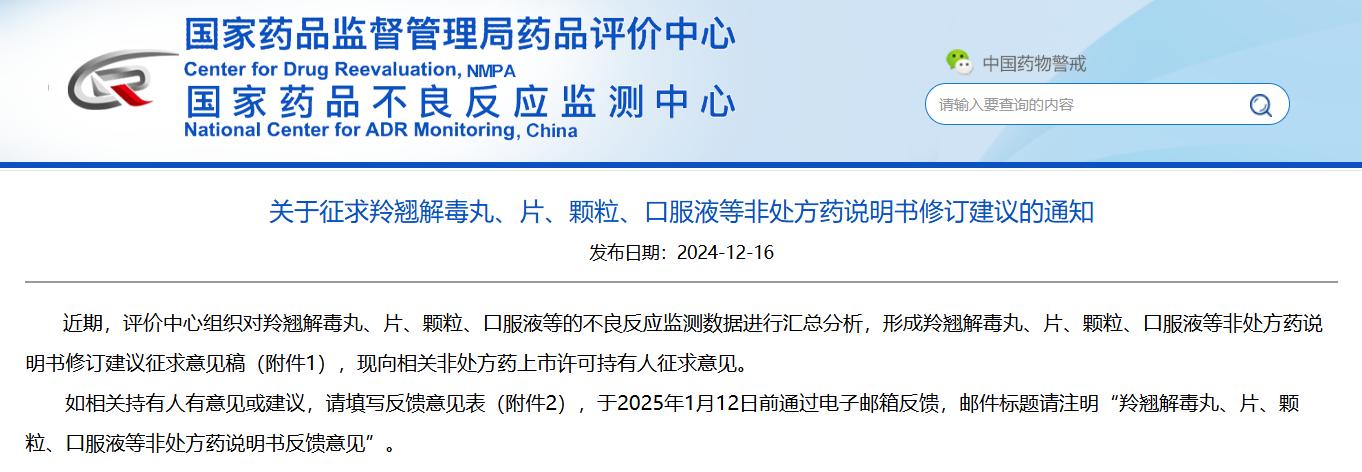 關(guān)于征求羚翹解毒丸、片、顆粒、口服液等非處方藥說明書修訂建議的通知
