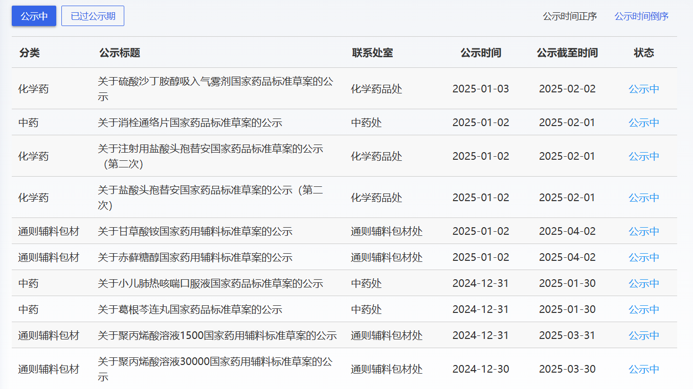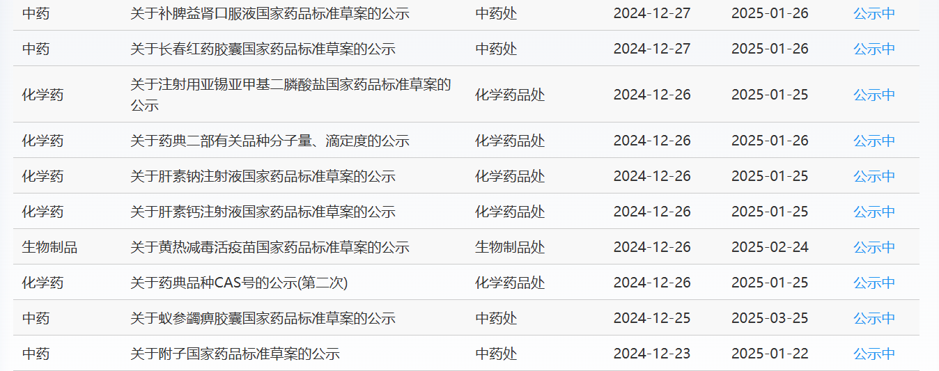 近期,藥典委發(fā)布的標(biāo)準(zhǔn)草案公示如下: