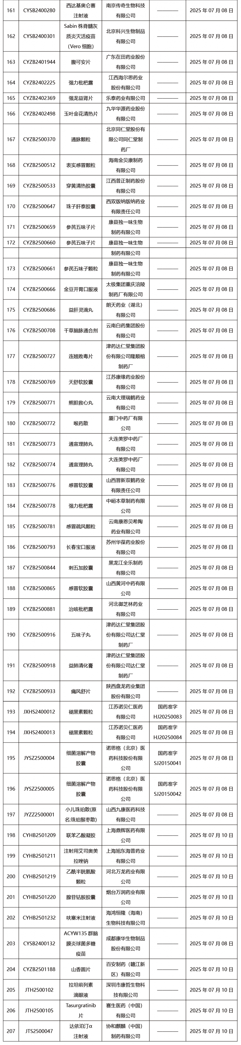 本周共發(fā)布207項(xiàng)藥品批件。
