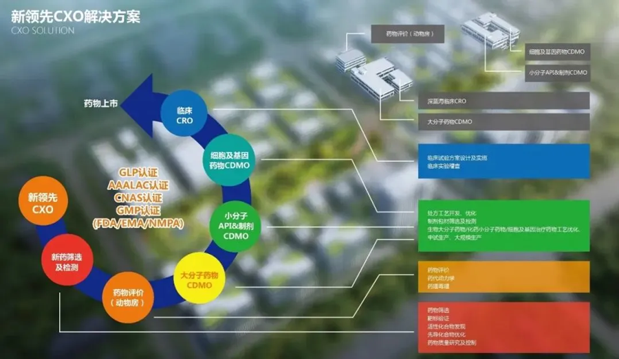 在這種背景下,新領先開創(chuàng)了行業(yè)獨特的CXO一體化服務模式,面向全球提供從藥物研發(fā)臨床前CRO、臨床CRO至創(chuàng)制生產CDMO的醫(yī)藥研發(fā)制造全產業(yè)鏈服務。