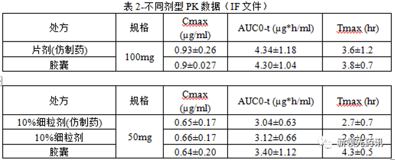 研究初期,通過對比日本上市的不同劑型,表明片劑、細(xì)粒劑、膠囊劑之間可能是生物等效的。細(xì)粒劑的處方組成設(shè)計與膠囊劑不同,其釋放速度更快。因此我們可以有把握地推測,分散片(快速體外行為)與膠囊劑具有生物等效性。