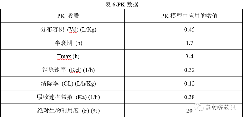 根據(jù)上述各組織酶和轉(zhuǎn)運蛋白的預(yù)測參數(shù),設(shè)定藥代動力學(xué)參數(shù)。將文獻中PK數(shù)據(jù)進行提取,基于房室模型預(yù)測的藥代動力學(xué),得到以下數(shù)據(jù),如下表: