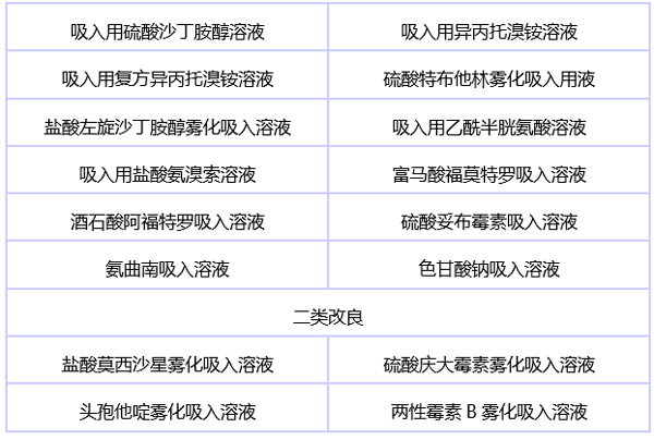 部分吸入制劑品種: