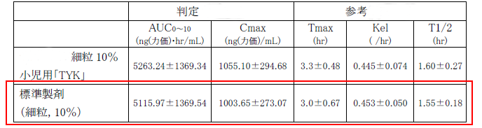 藥動(dòng)學(xué)數(shù)據(jù),其中紅框內(nèi)的數(shù)據(jù)為細(xì)粒劑標(biāo)準(zhǔn)制劑的藥動(dòng)學(xué)參數(shù):