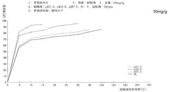 日本橙皮書中公布的本品原研膠囊劑50mg的體外溶出曲線如下: