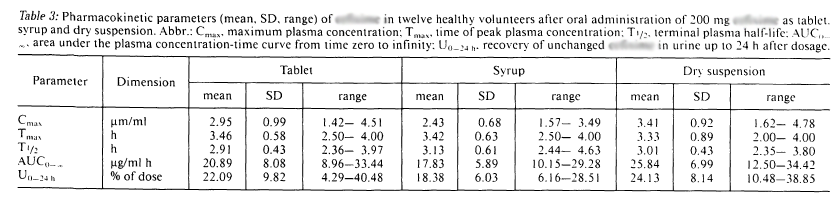 上表給出了給藥劑量均為200mg的前提下,片劑、糖漿、干混懸劑之間的藥動(dòng)學(xué)參數(shù)對(duì)比,由于糖漿劑劑型比較復(fù)雜,受糖漿粘度影響,可能影響體內(nèi)吸收,暫不做考慮,單純對(duì)比片劑以及干混懸劑的藥動(dòng)學(xué)參數(shù),如下: