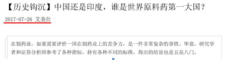 在2017-07-26“【歷史鉤沉】中國還是印度,誰是世界原料藥第一大國?”這篇報道中指出: