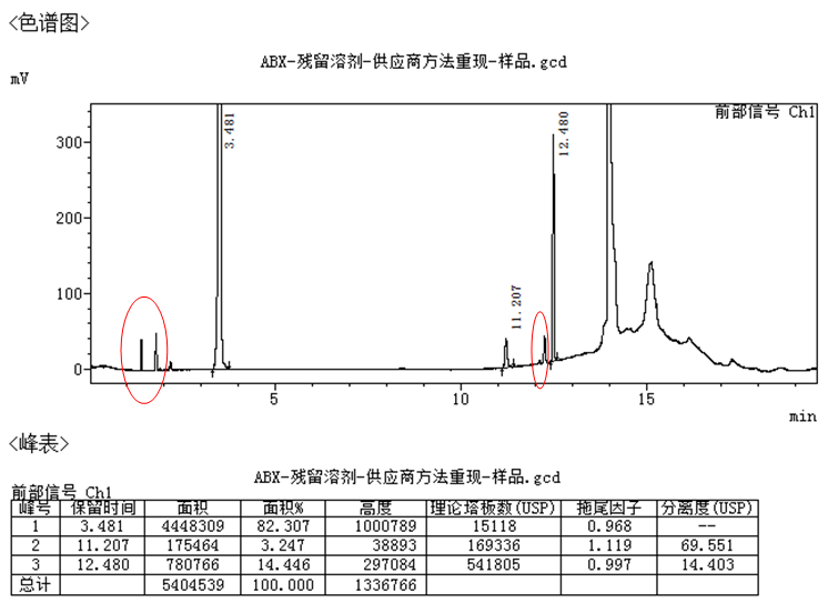 圖1 鹽酸鹽原料藥1號供試品GC色譜圖