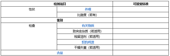 *藍色字體,標準中必須包含項目,黑色字體根據(jù)實際檢測結構確定是否增訂入質(zhì)量標準