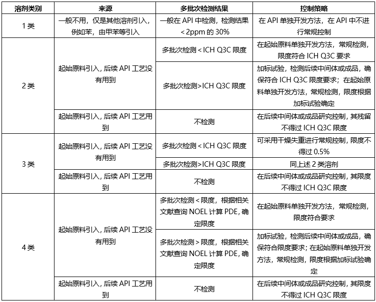 根據(jù)起始原料合成工藝、終產(chǎn)品合成工藝,ICH Q3C,確定控制策略如下: