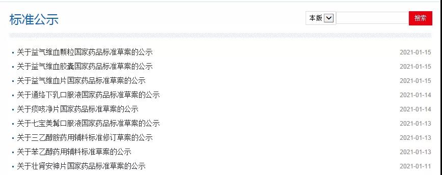 本周壯腎安神片、七寶美髯口服液、通絡(luò)下乳口服液、痰咳凈片、益氣維血顆粒、益氣維血膠囊、益氣維血片國(guó)家藥品標(biāo)準(zhǔn)草案公示,苯乙醇藥用輔料標(biāo)準(zhǔn)草案公示、三乙醇胺藥用輔料標(biāo)準(zhǔn)修訂草案公示。