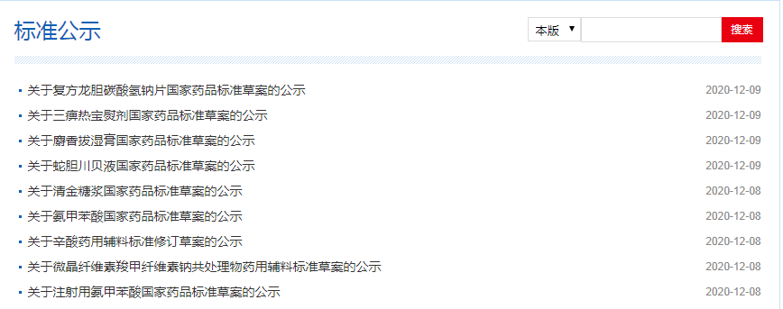 本周氨甲苯酸等9個品種國家藥品標(biāo)準(zhǔn)草案公示。