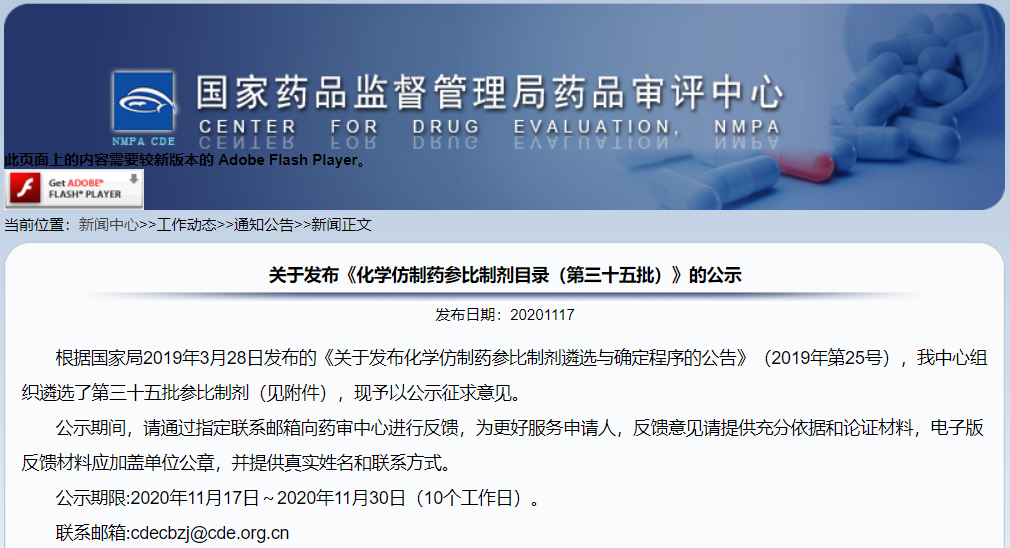 關(guān)于發(fā)布《化學(xué)仿制藥參比制劑目錄(第三十五批)》的公示(征求意見(jiàn)稿)