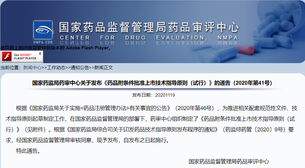 關(guān)于發(fā)布《藥品附條件批準(zhǔn)上市技術(shù)指導(dǎo)原則(試行)》的通告(2020年第41號(hào))