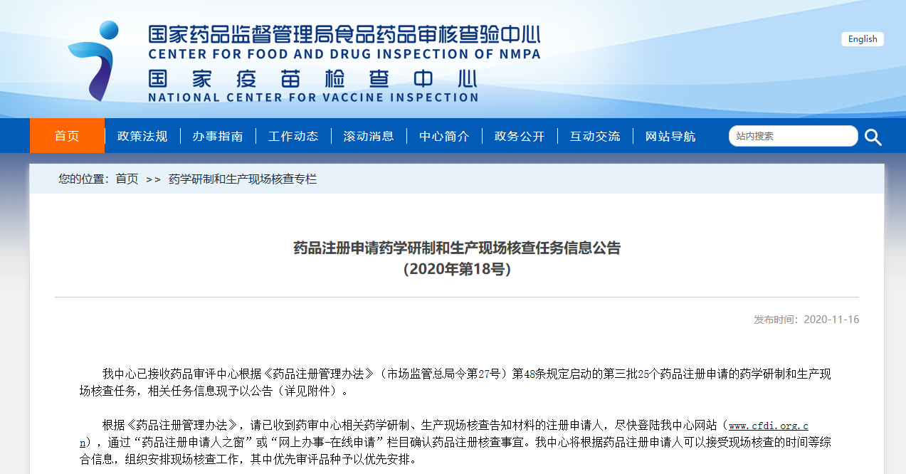 藥品注冊(cè)申請(qǐng)藥學(xué)研制和生產(chǎn)現(xiàn)場(chǎng)檢查任務(wù)信息公告