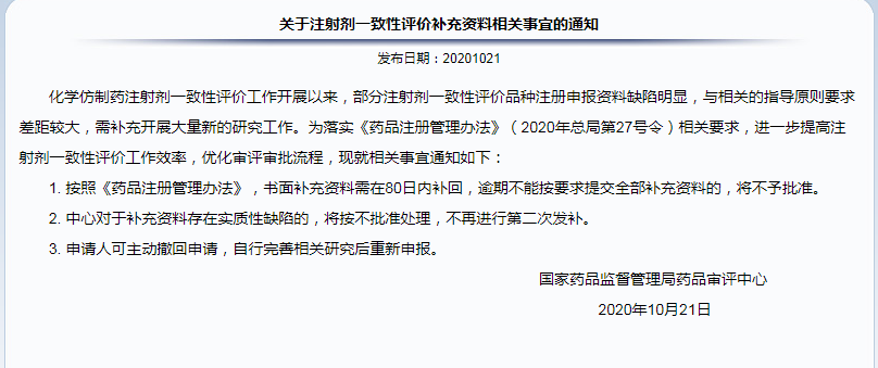 ? 關(guān)于注射劑一致性評(píng)價(jià)補(bǔ)充資料相關(guān)事宜的通知