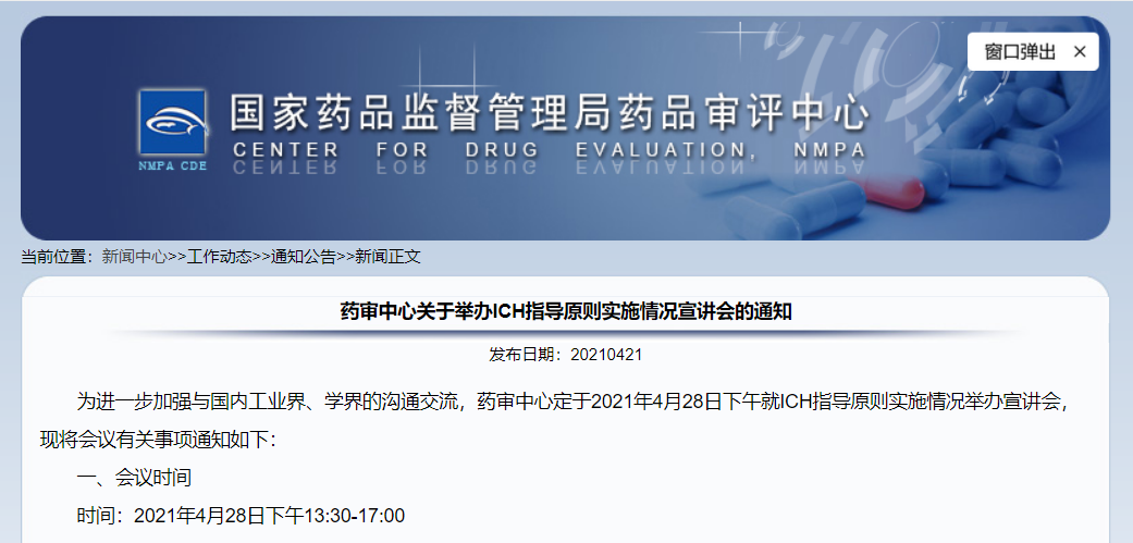 關(guān)于舉辦ICH指導(dǎo)原則實施情況宣講會的通知