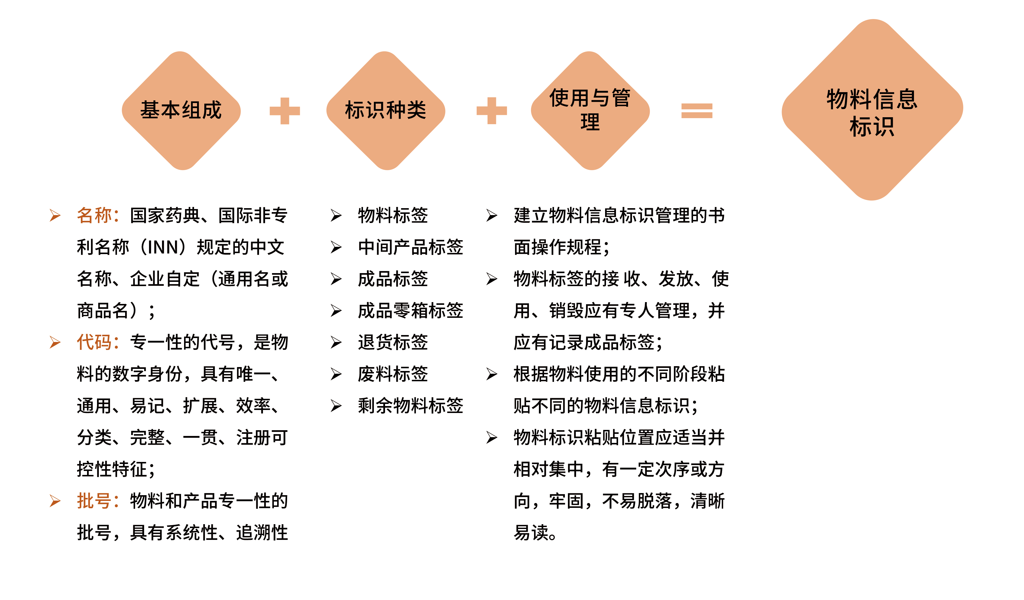 基本要求:使用物料標識的目的在于防止混淆和差錯,從而避免物料和產(chǎn)品的污染和交叉污染。