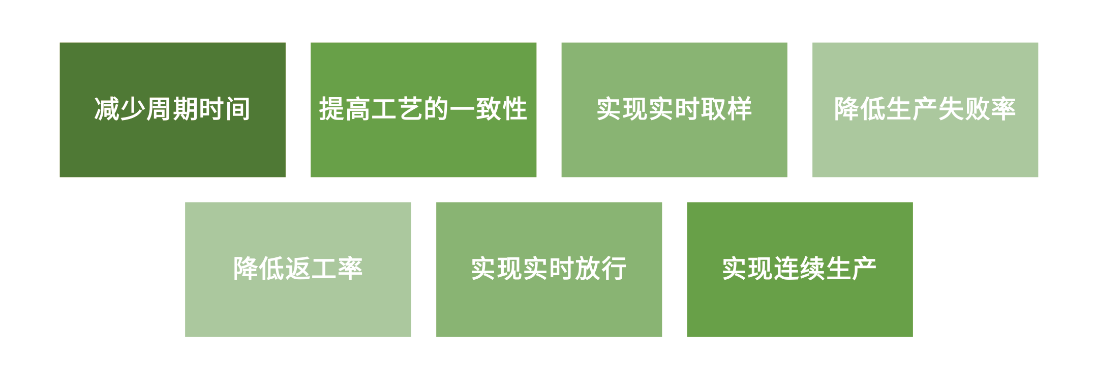 在生產(chǎn)過(guò)程中通過(guò)使用PAT可加速放行測(cè)試時(shí)間,進(jìn)而達(dá)成以下產(chǎn)品實(shí)現(xiàn)目標(biāo):