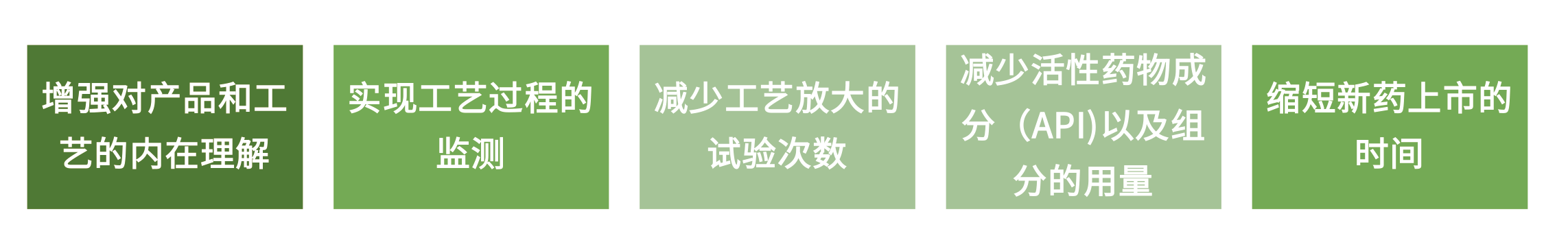因?yàn)檫@些目標(biāo)都是和生產(chǎn)環(huán)節(jié)緊密相關(guān)的,而基于“質(zhì)量源于設(shè)計(jì)”原則,將PAT運(yùn)用在藥物開(kāi)發(fā)過(guò)程可以提升對(duì)工藝的理解和減少工藝開(kāi)發(fā)與放大的時(shí)間,從而實(shí)現(xiàn)如下研發(fā)目標(biāo):