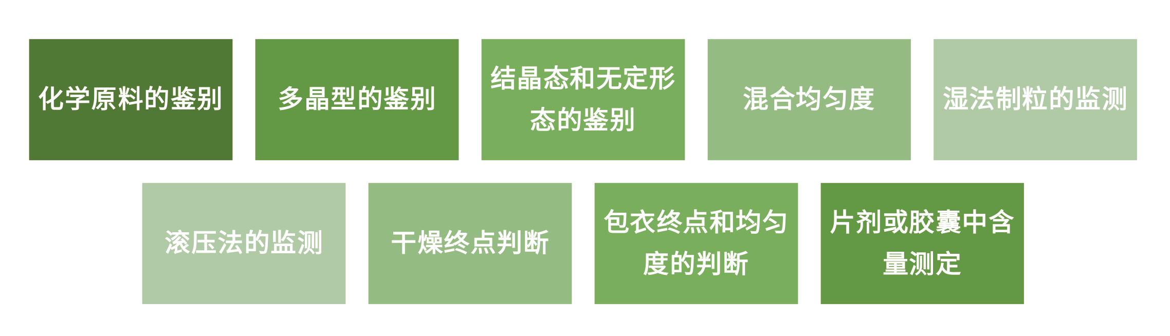NIR在固體制劑生產(chǎn)領(lǐng)域的主要應(yīng)用包括: