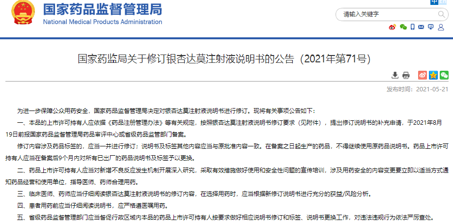 國(guó)家藥監(jiān)局關(guān)于修訂銀杏達(dá)莫注射液說(shuō)明書(shū)的公告(2021年第71號(hào))