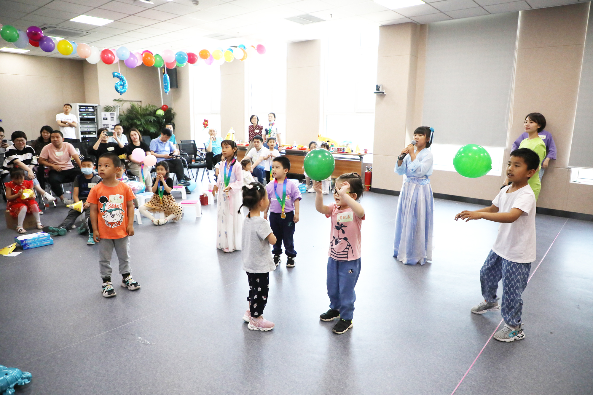 參觀過實驗室后,孩子們踴躍地參與到游戲環(huán)節(jié)中。孩子們分成兩個年齡組進行了搶板凳游戲。爸爸媽媽們也被邀請和孩子們一起參加隨后的投球比賽。