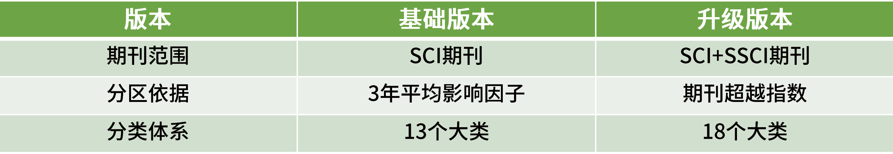 最流行是的中科院的分區(qū)。從2020年,分區(qū)依據(jù)由原來(lái)的影響因子換成超越指數(shù),這種分區(qū)方法將經(jīng)歷2019-2021三年的過(guò)渡期,由原來(lái)的13大類(lèi)變成了18大類(lèi),如下圖所示。
