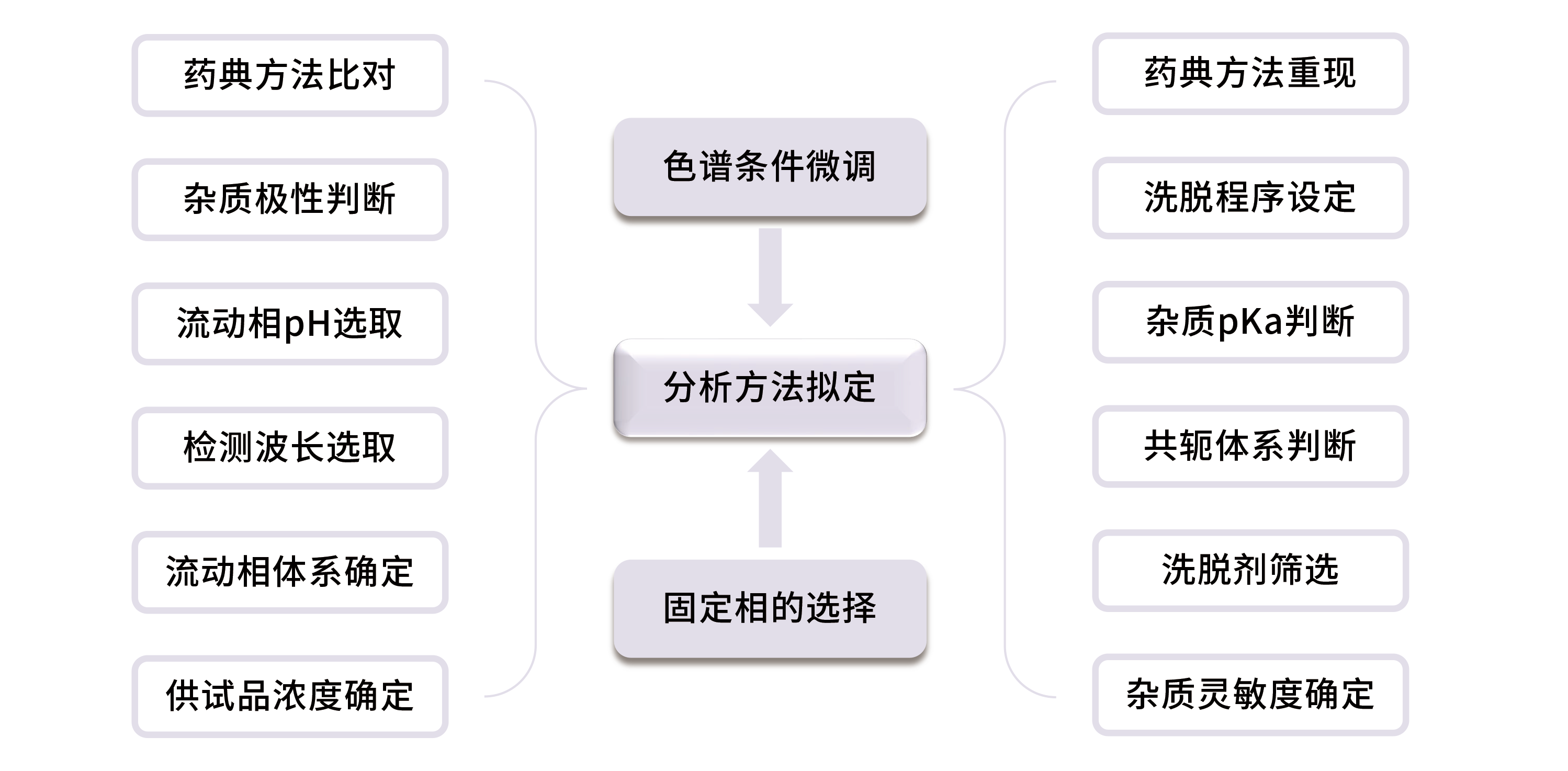 原料藥與雜質(zhì)pKa判斷,以選取流動(dòng)相體系最佳pH值。