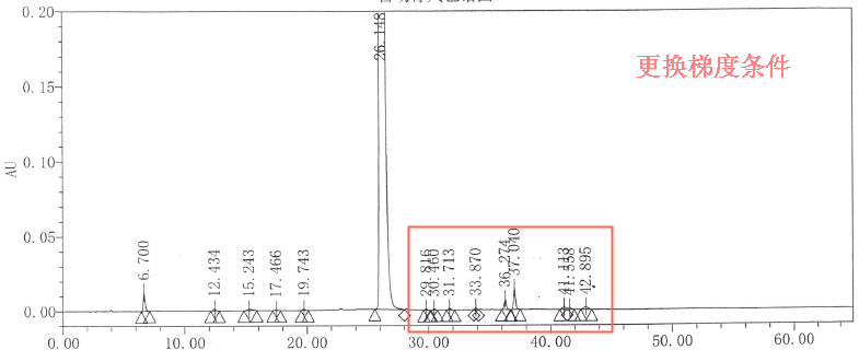 延長(zhǎng)梯度洗脫高比例洗脫劑洗脫時(shí)間,防止小極性雜質(zhì)漏檢。