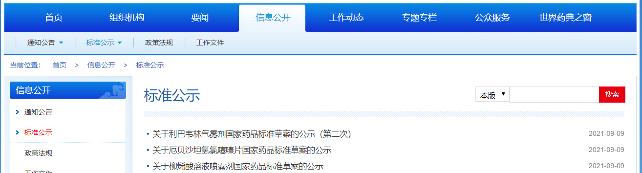 1.本周關于柳烯酸溶液噴霧劑、厄貝沙坦氫氯噻嗪片、 利巴韋林氣霧劑國家藥品標準公示。