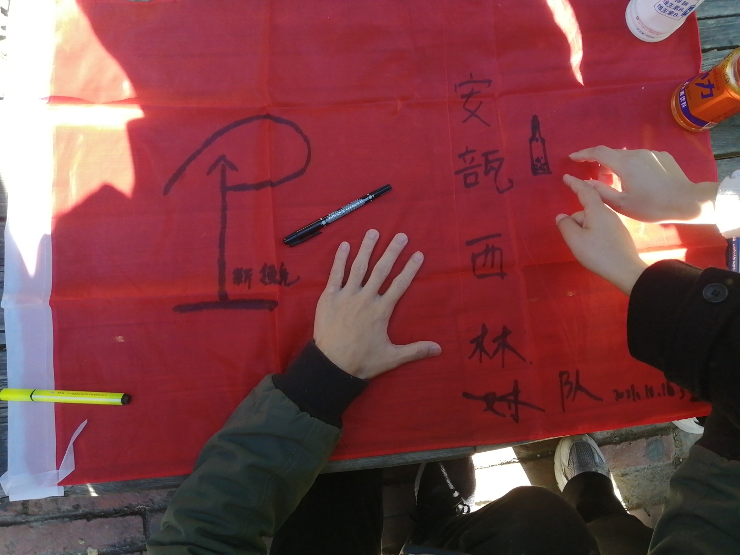 ▲各隊(duì)隊(duì)員們充分發(fā)揮想象力,腦洞大開,設(shè)計(jì)隊(duì)旗