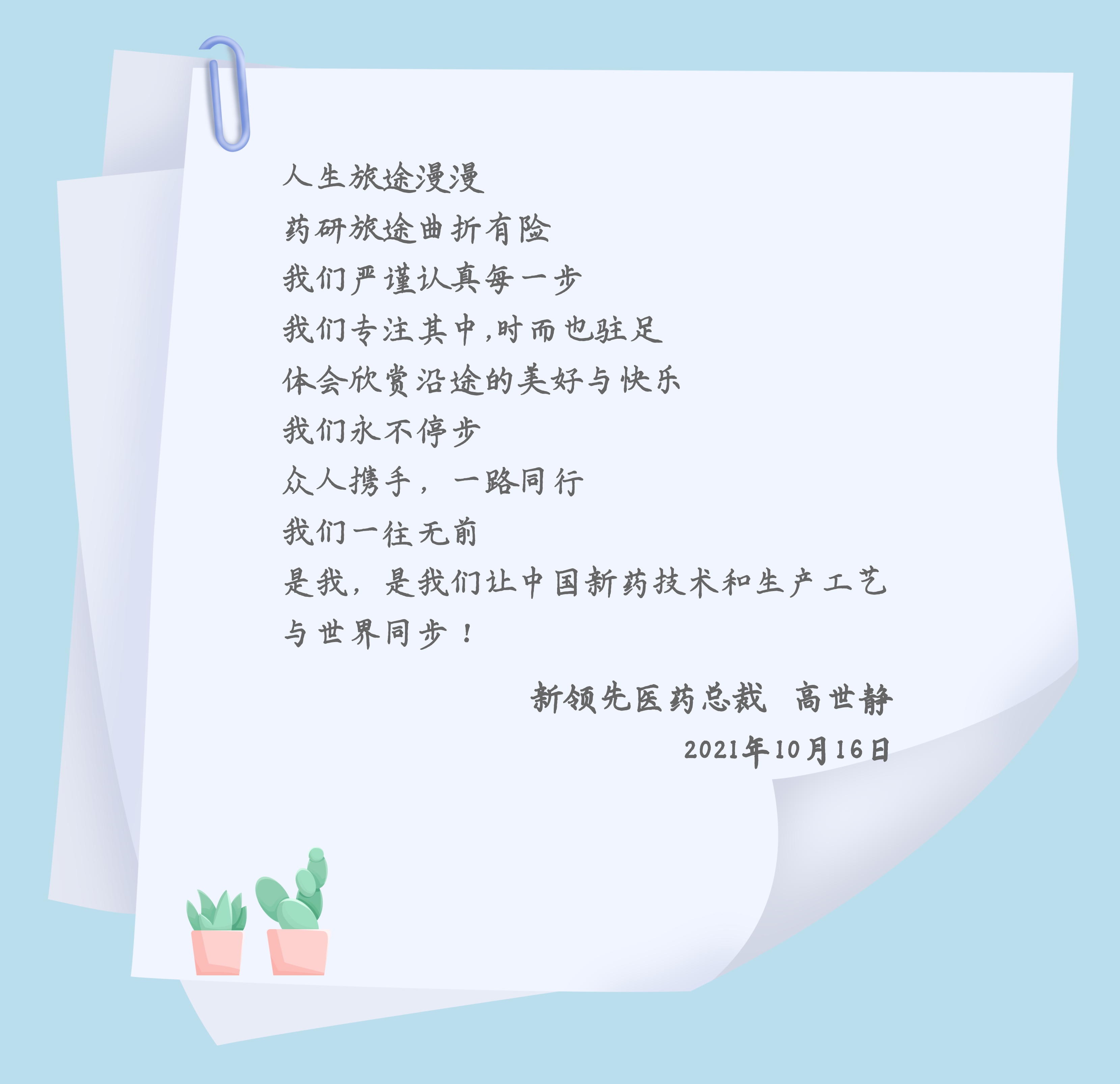 我們從事的是醫(yī)藥健康事業(yè),更要有健康的體魄和精神,新領(lǐng)先人始終秉承越山向海的精神,在藥品研發(fā)過(guò)程中堅(jiān)韌不拔、攻堅(jiān)克難,向著目標(biāo),一往無(wú)前,為健康中國(guó)戰(zhàn)略貢獻(xiàn)自己的力量;同時(shí),我們也希望通過(guò)本次徒步活動(dòng),鼓勵(lì)大家親近自然,強(qiáng)健體魄,以積極、陽(yáng)光、向上的心態(tài)面對(duì)生活,面對(duì)工作,讓我們一起做“體面的新領(lǐng)先人”!