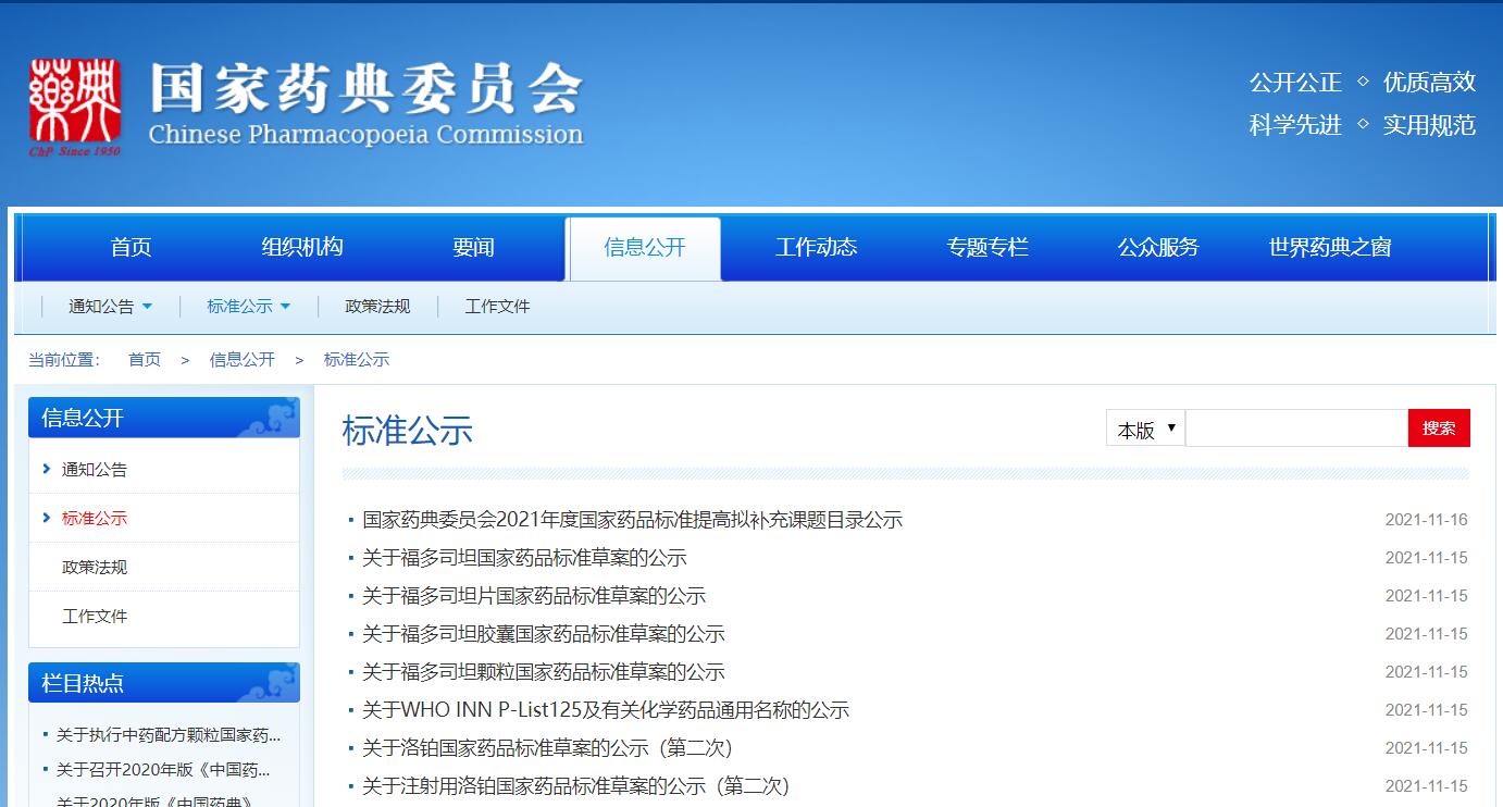 本周福多司坦、福多司坦片、福多司坦膠囊、福多司坦顆粒、洛鉑、注射用洛鉑國(guó)家藥品標(biāo)準(zhǔn)草案公示,WHO INN P-List125及有關(guān)化學(xué)藥品通用名稱的公示。