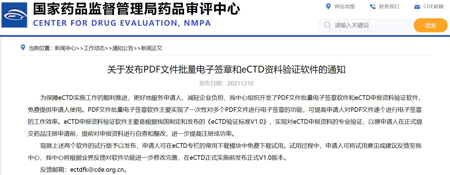 關(guān)于發(fā)布PDF文件批量電子簽章和eCTD資料驗(yàn)證軟件的通知