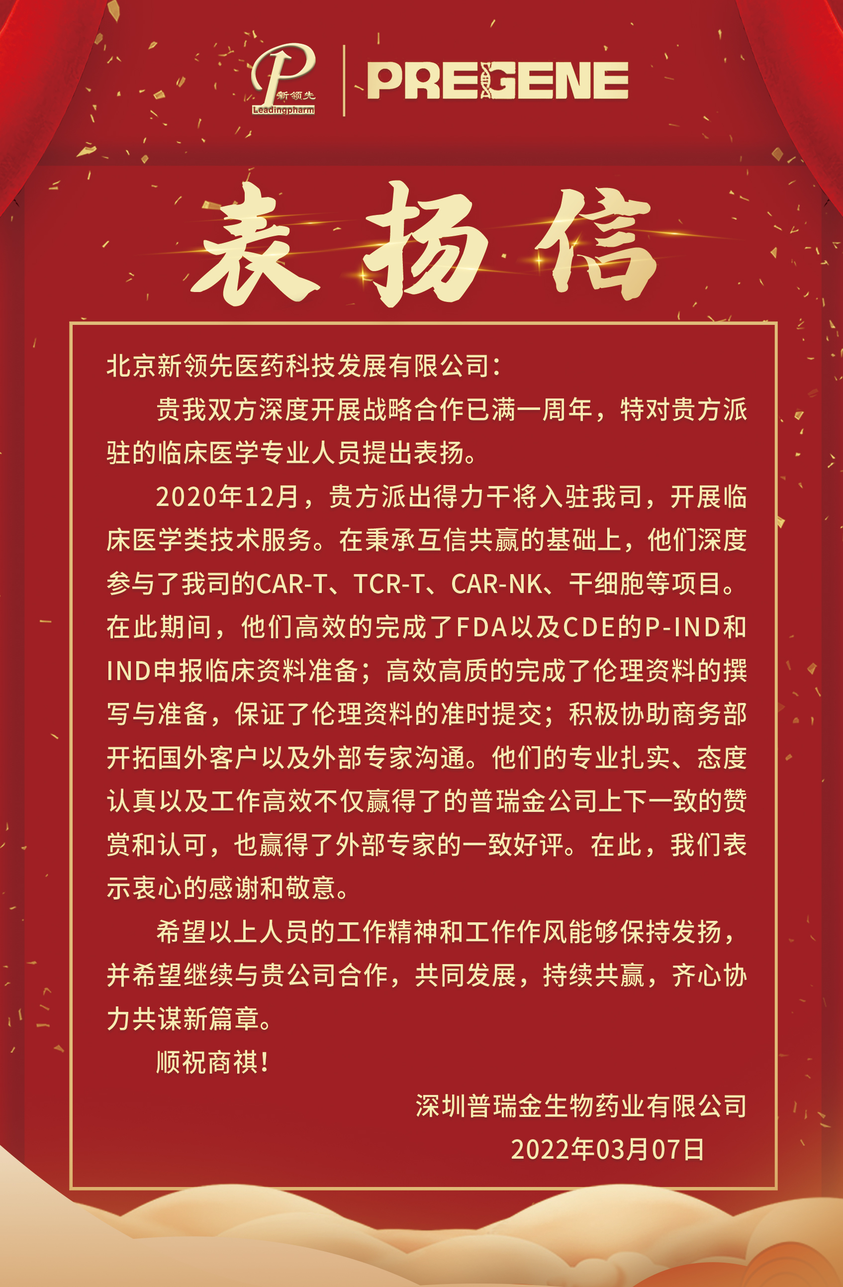 深圳普瑞金作為面向全球的細(xì)胞基因治療領(lǐng)域的領(lǐng)軍者,2020年7月與新領(lǐng)先簽訂戰(zhàn)略合作協(xié)議,雙方在醫(yī)學(xué)、藥政、臨床等各方面進(jìn)行了深度的戰(zhàn)略合作。