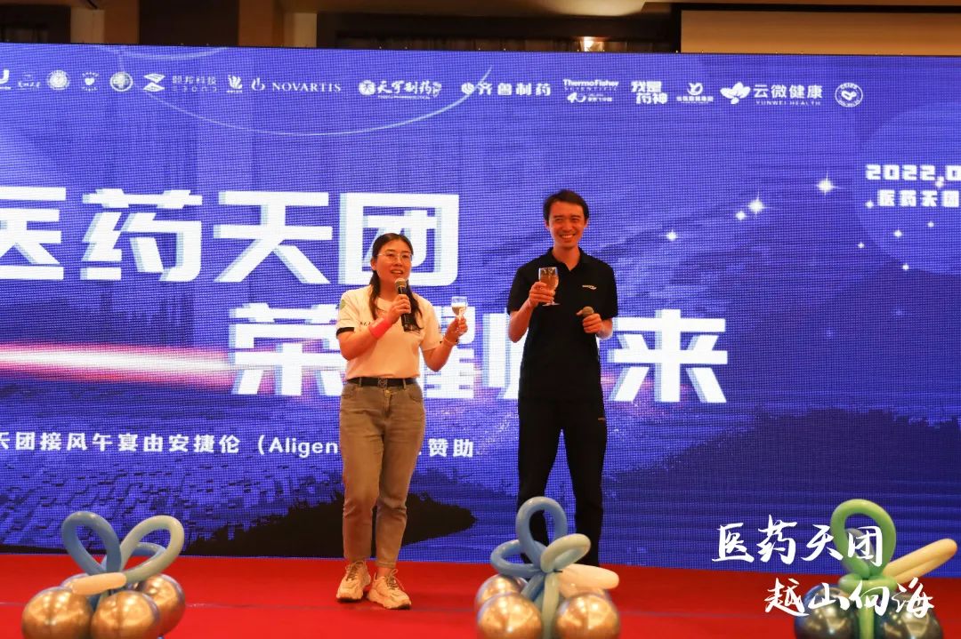 “醫(yī)藥天團”發(fā)起團隊代表、新領(lǐng)先醫(yī)藥總裁高世靜女士和越山向海組委會代表、眾輝智跑商務(wù)總監(jiān)尚研先生共同舉杯祝賀“醫(yī)藥天團”英雄們凱旋。接風宴現(xiàn)場舉行了隆重的頒獎典禮以及歡迎儀式,在歡聲笑語中為本次活動畫上了一個完美的句號。