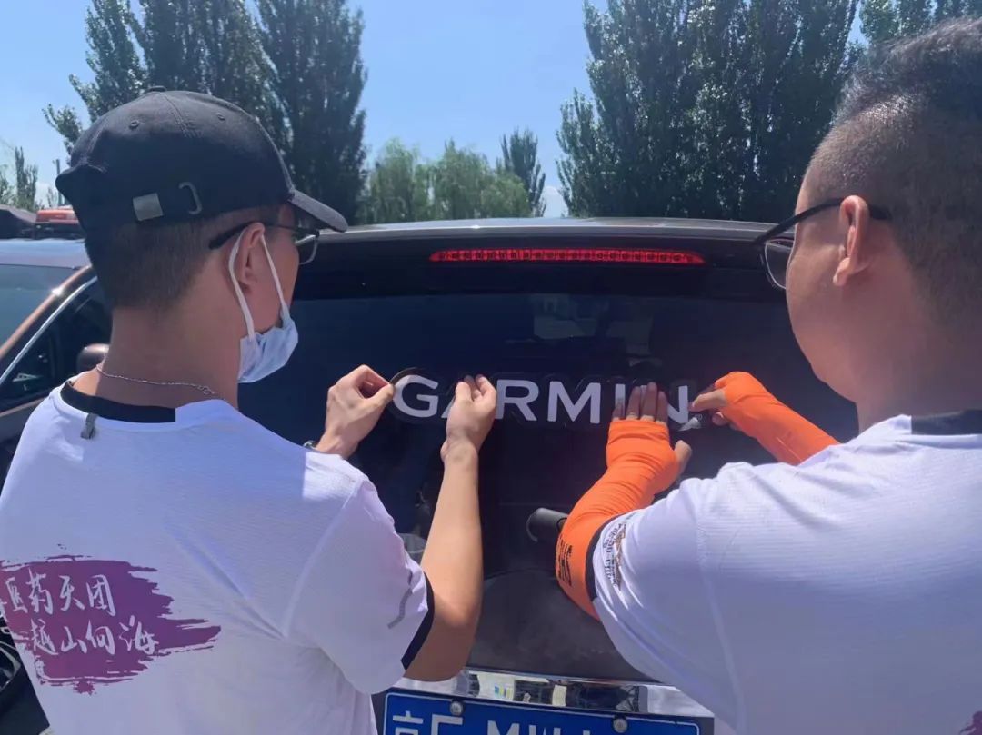 圖:醫(yī)藥天團成員在賽前貼車貼
