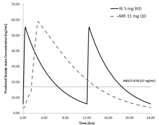 ·托法替布緩釋片巧妙地與速釋片劑數(shù)據(jù)進行橋接,證明緩釋制劑的有效性;