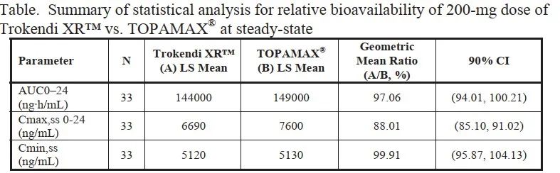 ·托吡酯緩釋膠囊將每個時間段的藥動學參數(shù)與片劑進行比較,證明兩種制劑的差異較小。實現(xiàn)豁免驗證性臨床。