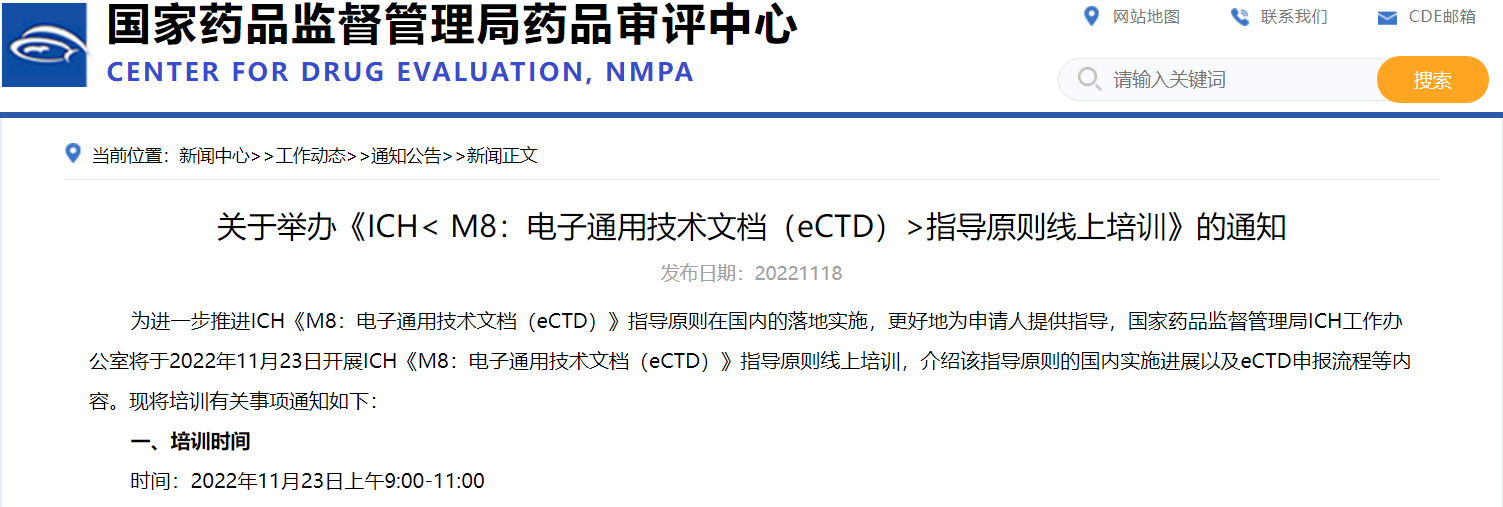 關(guān)于舉辦《ICH< M8:電子通用技術(shù)文檔(eCTD)>指導(dǎo)原則線上培訓(xùn)》的通知