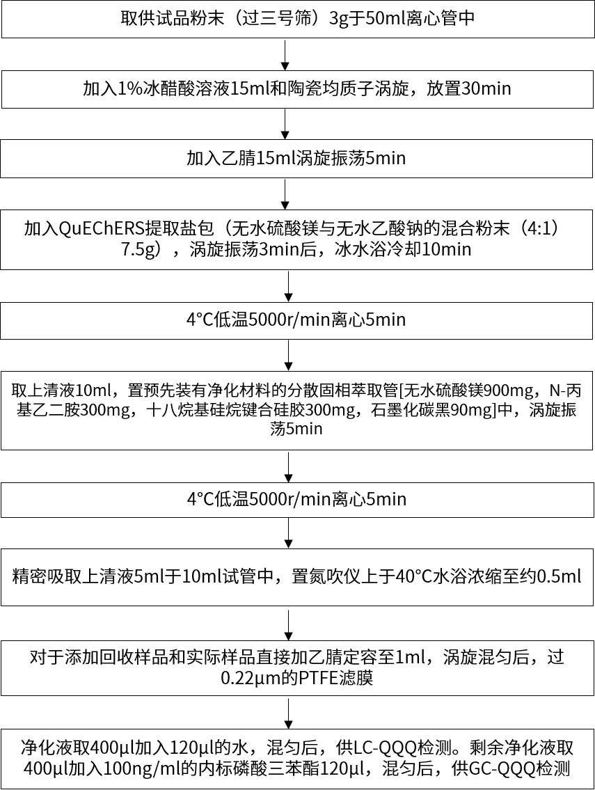 目前,中藥材農(nóng)殘分析主要包括樣品的前處理和檢測(cè)兩部分。