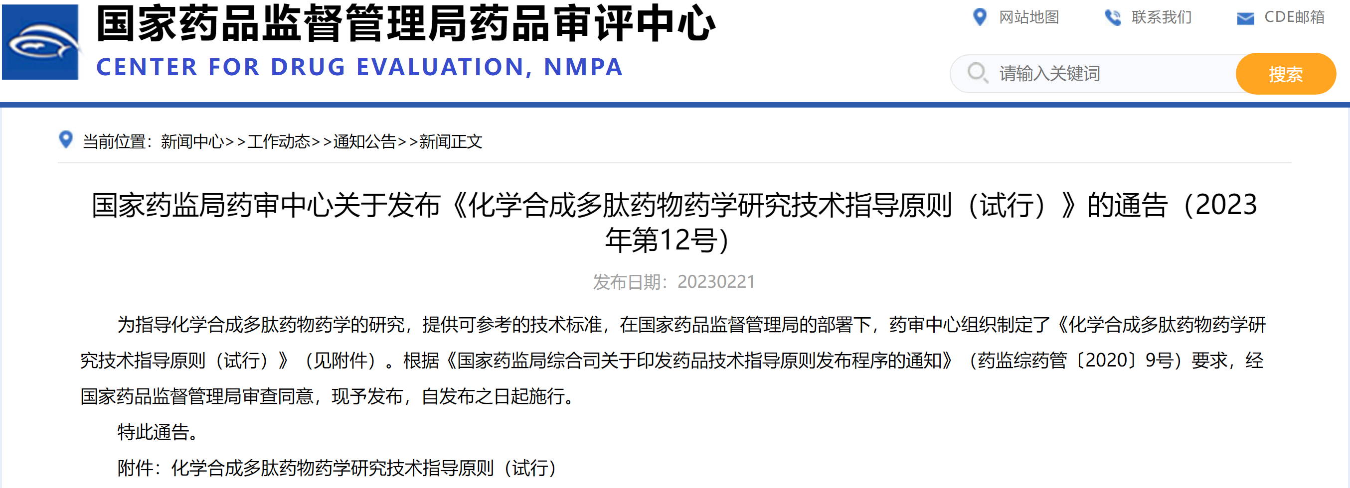 國家藥監(jiān)局藥審中心關(guān)于發(fā)布《化學合成多肽藥物藥學研究技術(shù)指導原則(試行)》的通告(2023年第12號)