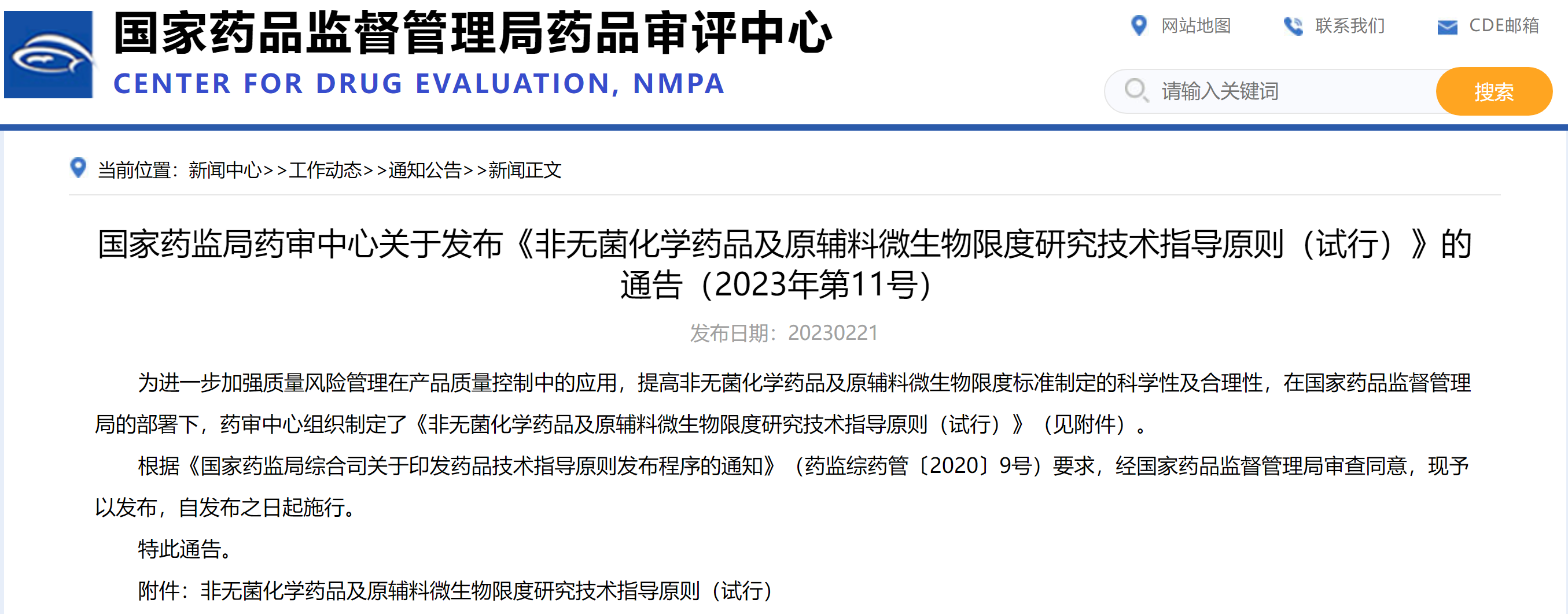 國家藥監(jiān)局藥審中心關(guān)于發(fā)布《非無菌化學藥品及原輔料微生物限度研究技術(shù)指導原則(試行)》的通告(2023年第11號)