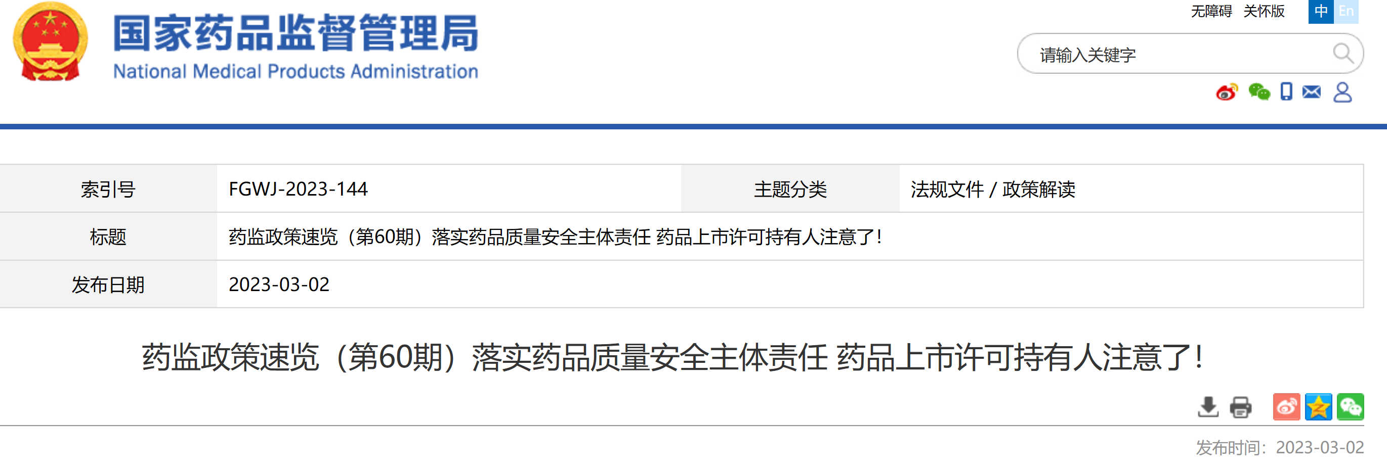 藥監(jiān)政策速覽(第60期)落實(shí)藥品質(zhì)量安全主體責(zé)任 藥品上市許可持有人注意了