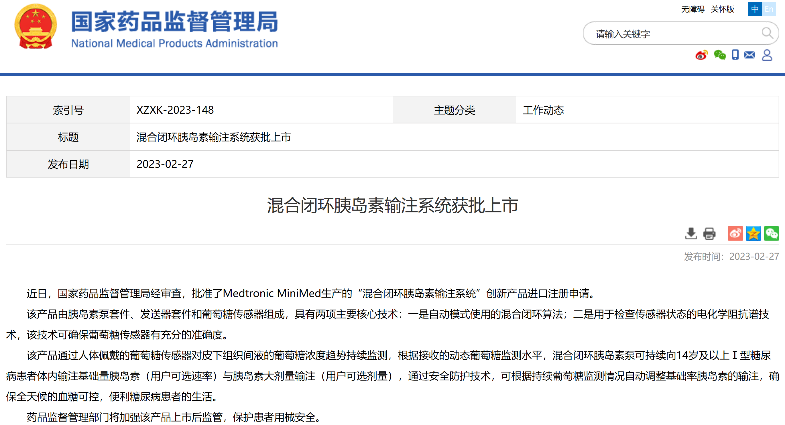 混合閉環(huán)胰島素輸注系統(tǒng)獲批上市