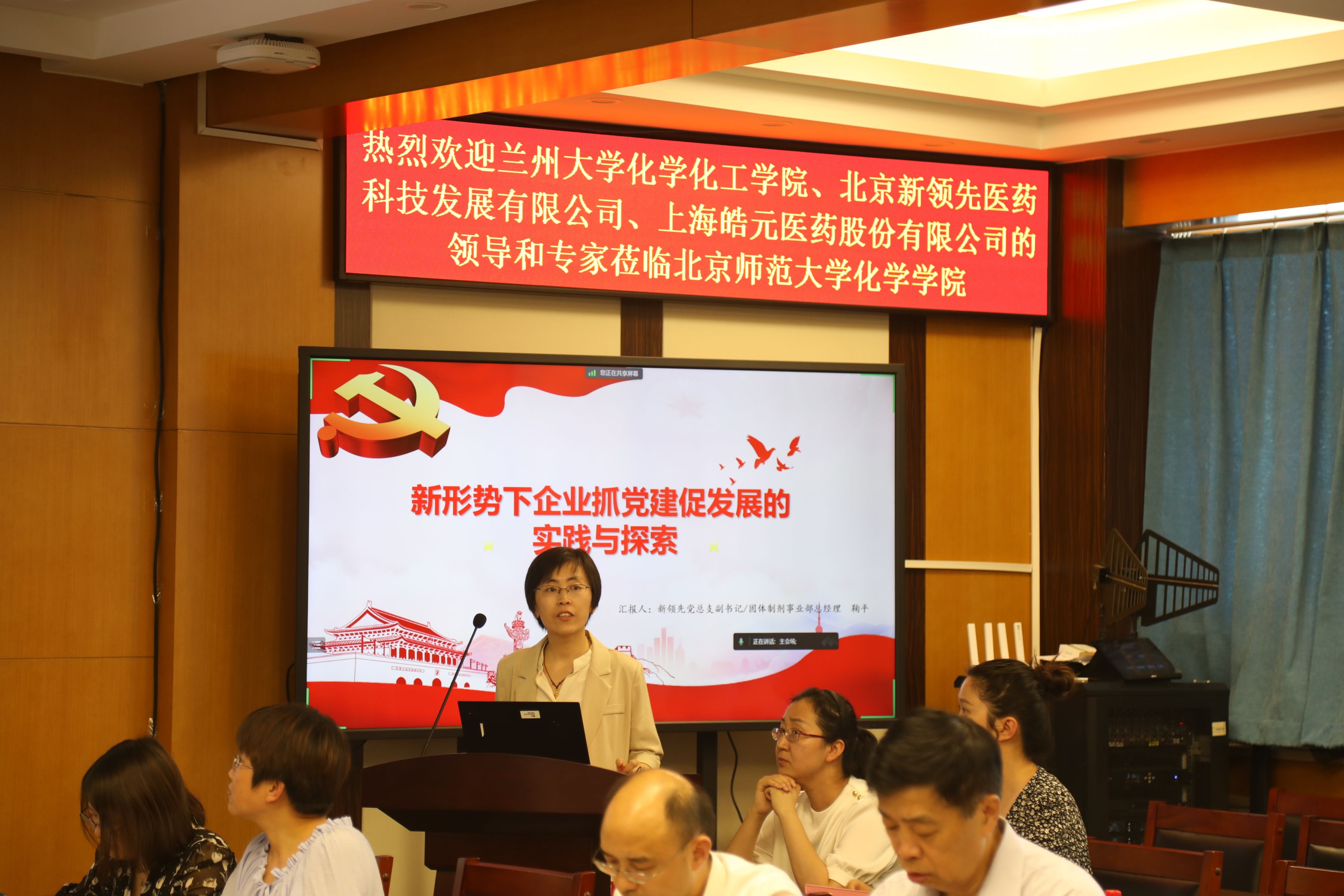 ▲ 新領(lǐng)先醫(yī)藥黨總支副書記、固體制劑事業(yè)部總經(jīng)理鞠平女士,蘭州大學化學化工學院丁三元教授,北師大化學學院黨委辦公室主任、團委書記徐娜女士分別作黨建工作匯報