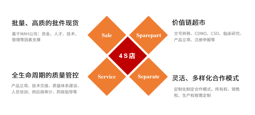 2019 年修訂的《藥品管理法》中全面實施藥品上市許可持有人(MAH)制度,并將其作為基本制度、核心制度,貫穿于《藥品管理法》。隨著MAH制度的不斷深入,MAH 4.0時代應(yīng)運(yùn)而生,從單純的批件轉(zhuǎn)讓變?yōu)槎嘣?ldquo;4S”立體服務(wù)。
