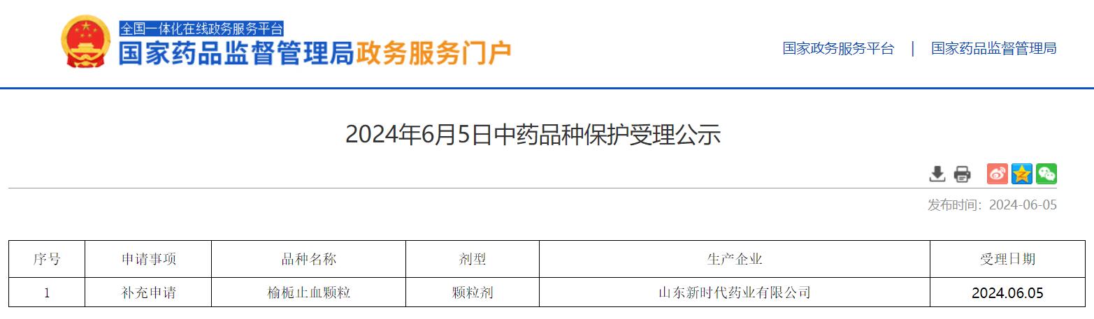 2024年6月5日中藥品種保護(hù)受理公示