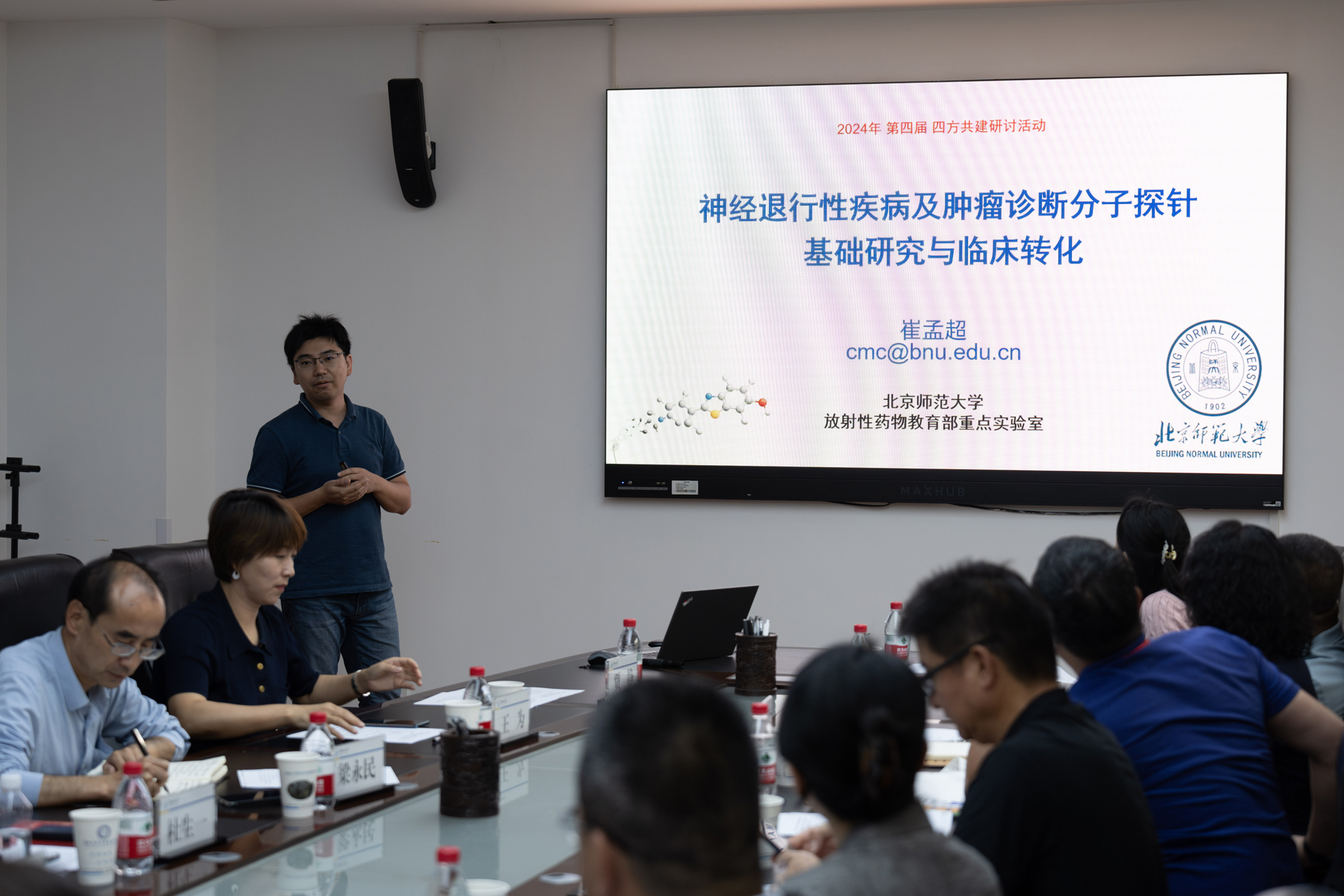 各方圍繞醫(yī)藥研發(fā)領(lǐng)域的研究進(jìn)展進(jìn)行了分享匯報,就產(chǎn)學(xué)研合作的新機(jī)制、新模式和科技創(chuàng)新與成果轉(zhuǎn)化進(jìn)行了深度交流與探討。北京師范大學(xué)化學(xué)學(xué)院教授盧忠林和上海皓元醫(yī)藥股份有限公司高級副總裁楊紹波主持活動。